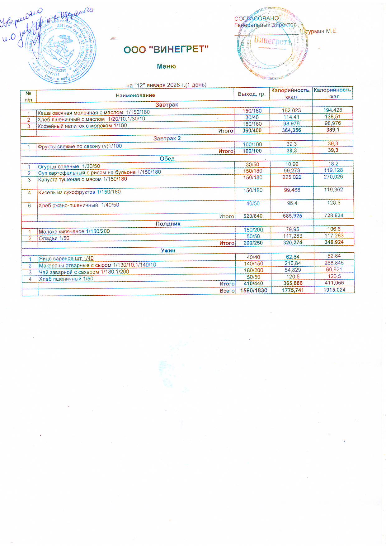- Меню на 12.01.2026