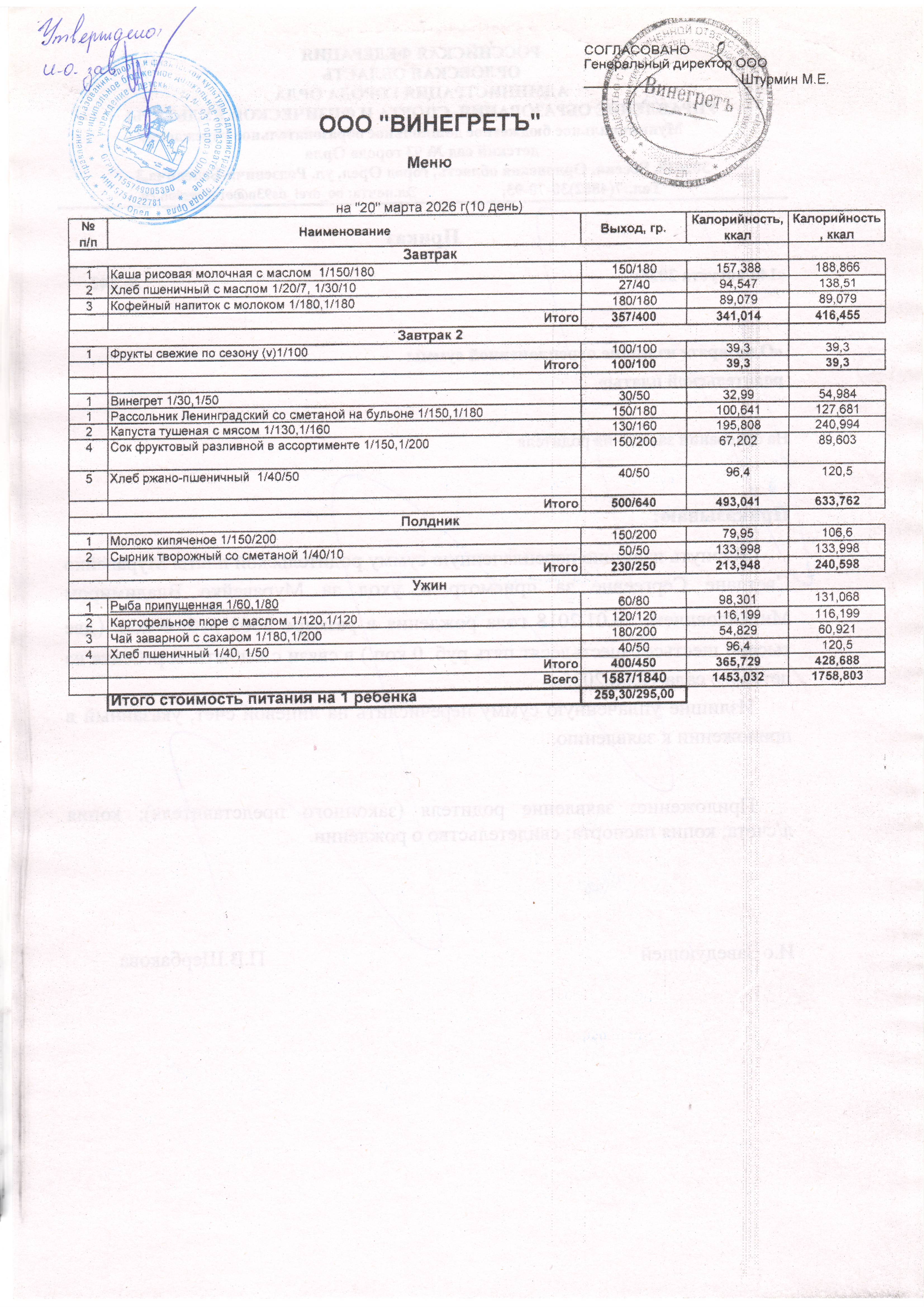 - Меню на 10.03.2026