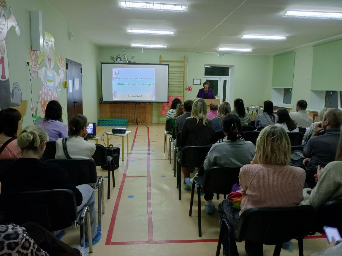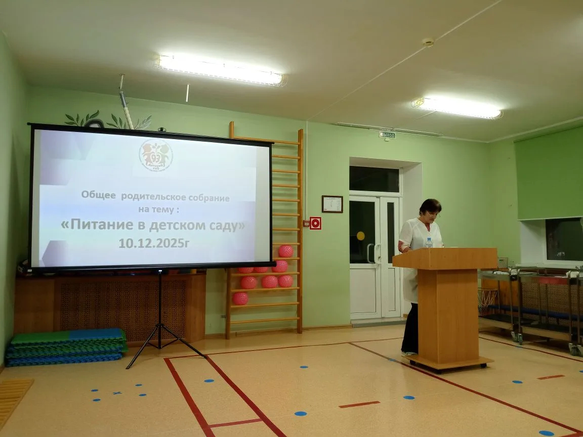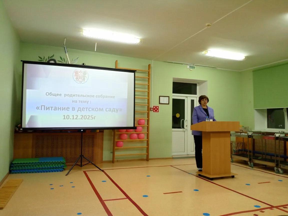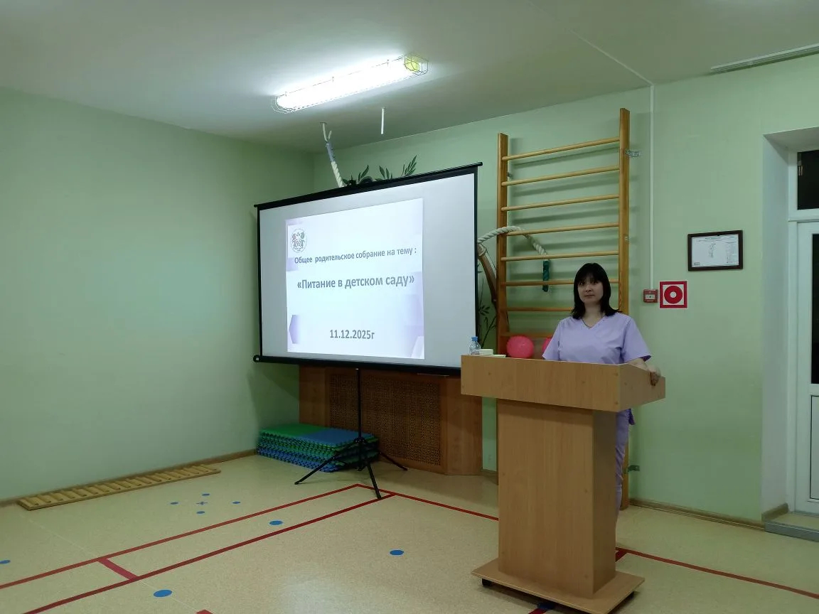 10 и 11 декабря 2025г в ДОУ состоялись общие родительские собрания на тему "Питание в детском саду" , на котором выступали заведующая Любовь Александровна Передкова , медсестра Елена Владимировна Филичева и Евгения Павловна Ломакина. Они рассказали о нормах питания детей в зависимости от возраста, показали нормативные документы, которые регламентируют работу ДОУ в отношении питания детей . Продемонстрировали блюда из меню за один день родителям (законные представители) и предложили продегустировать их.Родительская общественность осталась довольна организацией питания в ДОУ.